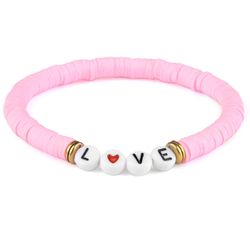 Letter bracelet have different words and designs for choice, customized words or designs are available.Polymer Clay Beads Bracelet Beach Bohemia Sweet 6mm Soft Clay Bracelet Elastic Lady Hand String Rainbow Bracelet, used for Gift, Party, Wedding, Anniversary, Engagement, Jewelry wholesaler, Distributor, Jewelry maker, Fashion Costume company, Souvenir maker, gift maker.